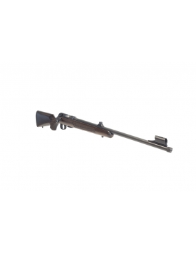 Ergonomie & Design : La crosse en hêtre avec quadrillage antidérapant offre une prise en main stable. La culasse présente un angle d'ouverture réduit à 60°, facilitant le montage d'optiques basses.