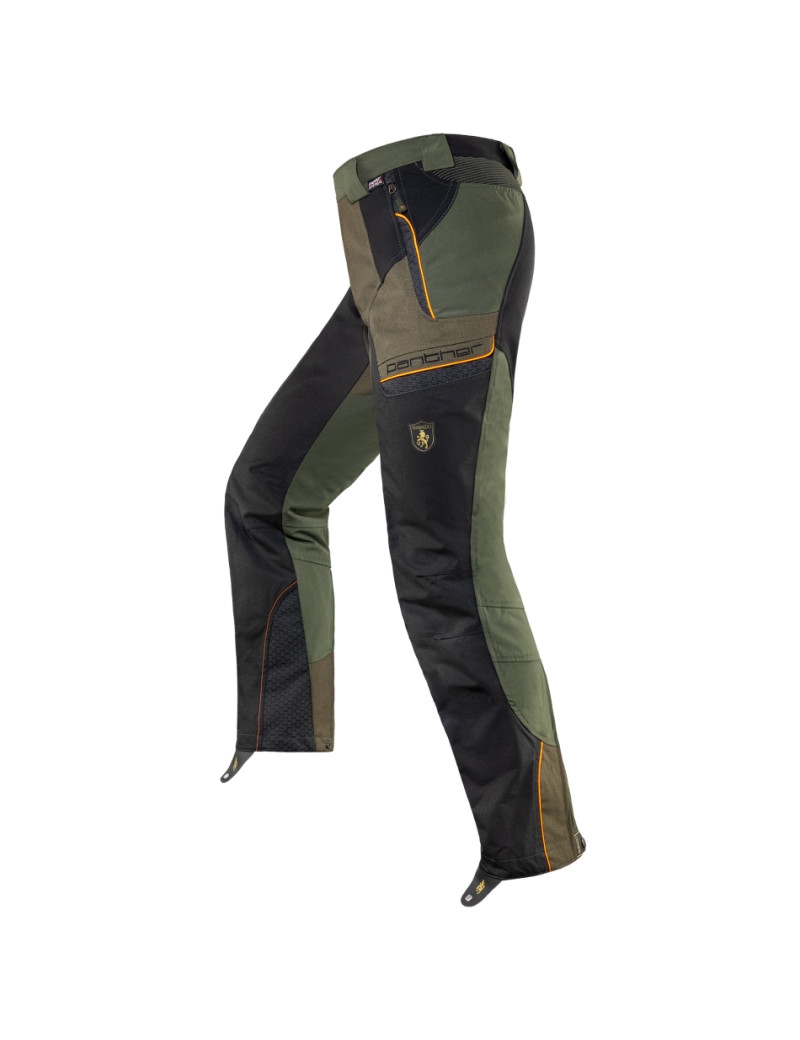 Arrivé à sa quatrième génération, PANTHER se confirme comme un "must-have" pour tous les chasseurs qui nécessitent une protection sans compromis. Deux ans de recherche et d'expérimentation nous ont conduits à la réalisation d'un nouveau matériau spécialement conçu pour ce pantalon: TITANIAL® HIGH-MODULE. Inséré dans la zone frontale de la genouillère, TITANIAL® HIGH-MODULE représente la nouvelle frontière de la haute ténacité. La version TITANIAL® est conçue pour ne pas faire de compromis et offrir une résistance élevée à l'abrasion, à la déchirure et au accrochage, grâce à une haute densité de fibres par centimètre carré. La zone de l'aine est également maintenant renforcée grâce à l'utilisation de généreux inserts en KETRATEX, capables de réduire sensiblement les problèmes d'accrochage et les déchirures.