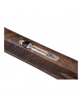 Le fusil Browning 825 au profil bas et racé, renonce aux conceptions de charnières à tourillons de la concurrence et s'appuie sur une version éprouvée de verrou plat et d'axe de charnière sur toute la largeur de la bascule. Ce système fait ses preuves depuis le légendaire Browning B25 de John Moses Browning. Il offre une résistance et une longévité maximale et s'ajuste automatiquement à l'usure pour garantir un verrouillage optimal de la bascule.